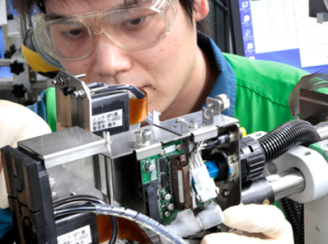 In addition to the Ink Development Department, we established the Print Head Department in 2002. We became the only inkjet printer manufacturer to regulate everything from 'development to production' in-house, including ink and the inkjet's indispensable head. With a depth of know-how in high precision micro-processing technology, we have been developing heads to match client needs. Our expertise in industrial inkjet printing has helped us innovate and create suitable print heads for the printing needs of niche industries, including electronics.
